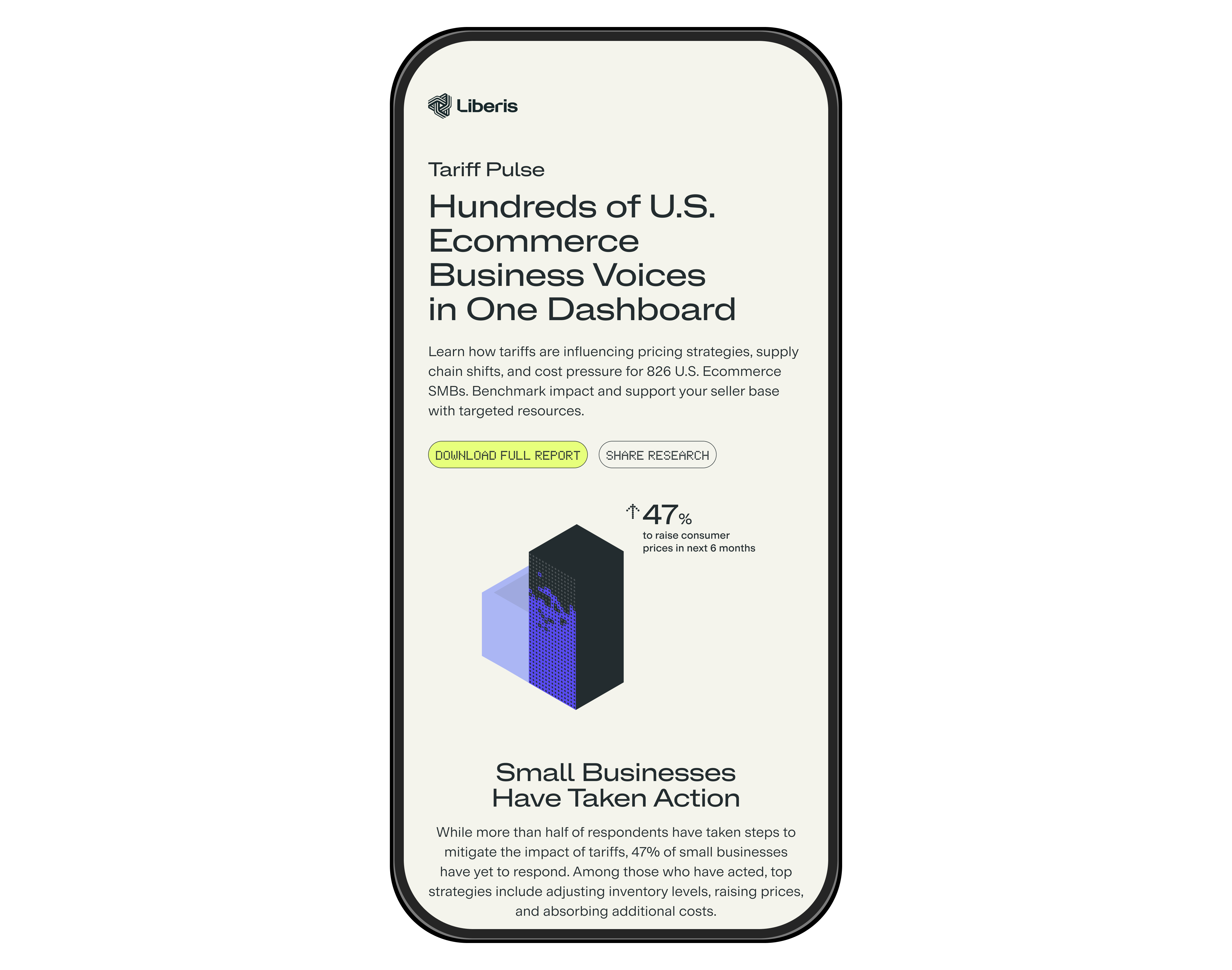 Following major tariff changes in the United States in 2025, Liberis conducted research to understand how ecommerce businesses were responding to rising costs and supply chain pressure. With limited internal design capacity, the Demand Generation team partnered with Souk to turn the research into a clear campaign.